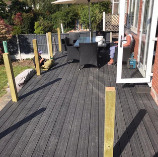 Jean in Essex has just sent us these pictures of her new composite decking in the colour charcoal and is very happy with the results so far. We are so glad that Jean is happy and we are so excited to see the finished result soon!!
